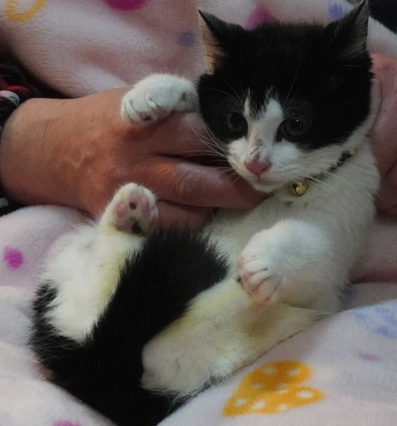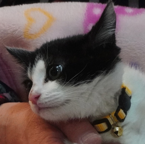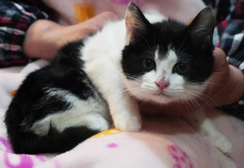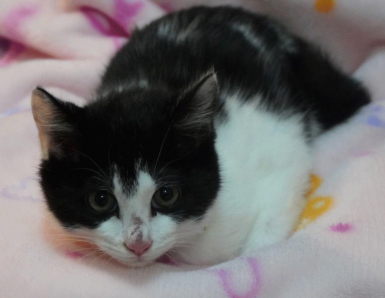 | 特徴(性格など) | とても元気で、食欲旺盛な黒白柄の男の子です。 健康状態は良好。猫エイズ、猫白血病ともに陰性で問題なし。 検便、駆虫済み。 予防接種は1回済み。(もう一度接種を予定しています。) |