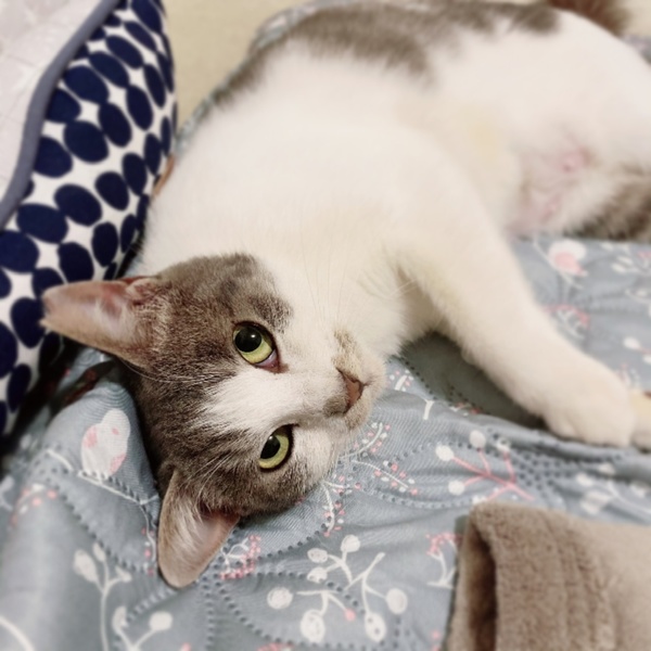 特徴(性格など) | ☆仮名 すみこちゃん ☆性別 メス ☆年齢 推定3歳 ☆体重 3.5キロ ☆毛色 グレー×白(サバ白?) ☆避妊手術済み ☆3種ワクチン接種済み(2020年10月24日) ☆ウイルス検査 エイズ陽性、白血病陰性 ☆ノミ、ダニ、回虫、条虫駆除済み ☆猫風邪治療 ☆トイレ躾済み 小顔でアイラインくっきりなお目目がキュートな「すみこちゃん」です。 初対面では最初だけ緊張しますがすぐにベタベタの甘えっ子に変身します。 膝に乗ってきて、ねえねえ撫でて〜と頭をすりつけながらの上目遣いはあざと可愛い雰囲気満載⁈ かと言って常に人にまとわりつくわけでもなく、ひとり遊びも上手にこなし、お留守番が多少長くても問題ありません。 保護した当初は、猫風邪による鼻炎が酷く青っ洟を飛ばしまくっていました。治療ですぐに良くなり今では全く症状はありません。 猫エイズ陽性ですが、ノンキャリアの子と何も変わらず元気いっぱいです。 保護猫の様子は動画をご覧ください。 https://www.youtube.com/c/komugi710 2009年からブログで保護猫やうちの猫のことを不定期に綴っています。 https://plaza.rakuten.co.jp/alohaplumeria/ |