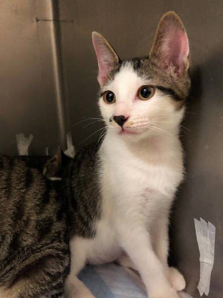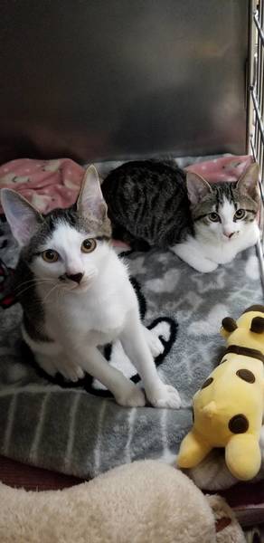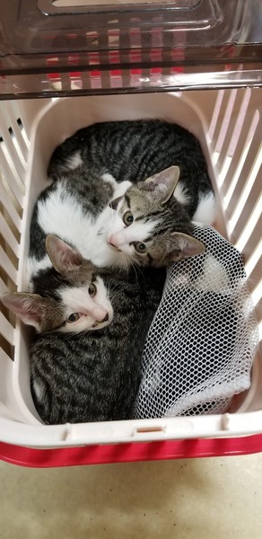 | 特徴(性格など) | サバ白柄の兄弟です。 仮名:ちびごん お鼻のところに鼻くそのような柄があり、見る角度によってぶちゃいくに見えますが、性格はハナマルでめちゃめちゃ人懐こくて可愛い!です。兄弟のかびごんを守るように接する優しい子です。 仮名:かびごん ちびごんに比べると可愛いお顔をしていて少し怖がりさんですが、食欲旺盛でよく食べよく寝て元気に遊びます。 怖がりさんですが、すぐに慣れてのどを鳴らす可愛い子です! |