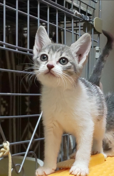 | 特徴(性格など) | サバシロの女の子です。 怖がりなので人慣れには時間がかかるかもしれないのですが、猫は好きなようで、成猫にも積極的に近付いていきます。 ノミダニ、寄生虫駆除済み ワクチン一回目接種済み |