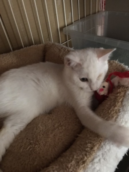 | 特徴(性格など) | ◆タムタムくん ●月齢の小さな子猫は、以下の条件についてご了承の上で応募をご検討下さい。 ◆高齢者のみのご家族からの子猫のお申し込みはお断りさせて頂きます。 ◆お留守番の少ないご家庭を希望します。 ◆小さなお子様のいるご家庭は状況によりお断りする場合がございます。 〇栃木県の多頭飼育現場から保護されました。 〇推定生後3ヶ月くらい(2020年12月中旬時点)の白猫の男の子です。 〇真っ白でふわふわ、尻尾はカギ尻尾です。 〇穏やかで人懐っこく、可愛いです。 〇保護前の猫風邪の影響か、左目の眼球が収縮しています。でも、生活に支障は感じられません。 〇じゃらしでじょうずに遊びます。 〇まだ小さな仔猫のため、お留守番の少ないおうちをお待ちしております。 ★ワクチン1回済。 ★猫エイズ、猫白血病ともに陰性。 ★不妊手術は、発育と体調をみて適宜おこないます。 ○12/13(日)開催の譲渡会に参加予定!下の要項をお読みいただき、ぜひ会いに来てください♪ ☆★☆★☆★☆★☆★☆★☆★☆★☆★☆★☆★☆★☆★☆★☆★☆★☆★☆★☆ ~12月13日(日)新山下にて譲渡会開催!~ ◎場所・・「島忠 新山下店」 神奈川県横浜市中区新山下2丁目12−34 JR根岸線「桜木町駅」より横浜市営バス(8.26.58.148系統)乗車「貯木場前」より徒歩約5分 みなとみらい線「元町・中華街駅」より徒歩約15分 ◎日程・・12月13日(日)(雨天決行) ◎時間・・12時から15時 【14時30分受付終了】 (会場に利用可能な無料駐車場がございます。そちらをご利用くださいませ。) 今回はコロナ対策のため、制限を設けての開催となります。 *3密対策のため、当日11時30分より整理券を配布いたします。 *各回15分 *各回先着3組様 *参加の際は、マスクの着用、アルコール消毒のご協力をお願いいたします。 *当日は検温の上、体温が37度以上の方はご参加いただけません。 *混雑状況により、中止させていただく場合がございます。 ※参加予定の犬猫は体調により参加できない場合があります。ご了承ください。 ☆★☆★☆★☆★☆★☆★☆★☆★☆★☆★☆★☆★☆★☆★☆★☆★☆★☆★☆ |