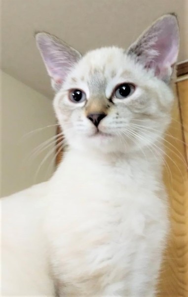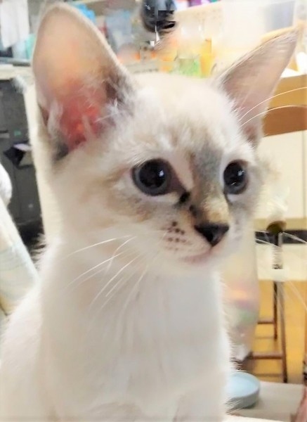 | 特徴(性格など) | 仮名: モカちゃん(メス) 毛色: シャムミックス風 性格: 4匹兄弟(モカ、ラテ、マロ、テト)は仲良しですが、モカちゃんは一人でいる事が多いです。 マイペースで自分の世界があるんだと思います。でも遊ぶ時は、兄妹一緒に仲良く遊んでいます。 産まれた時から人が傍らにいるので、とても人馴れしています。 兄妹のテトちゃん、ラテちゃんのうちの誰かと一緒のご縁を希望します。 ノミ取り済 検便済 駆虫済 3種混合ワクチン済 猫エイズ・白血病ウィルス検査はともに陰性です。 |
