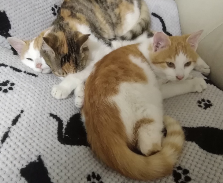 | 特徴(性格など) | 茶白の男の子です。尻尾はスラリと長めで体はプニプニしていて心地よい感触です。 良く食べ良く遊び元気に兄妹達と駆けずり回っています。健康状態も良好です。 ウイルス検査 エイズ、白血病共に陰性でした。 人馴れもしていてナデナデするとゴロゴロ喉を鳴らし気持ち良さそうにします。 甘えた可愛い声で鳴いたりするなどアピールも してます。トイレも直ぐに覚え問題ありません。 |