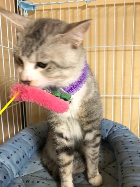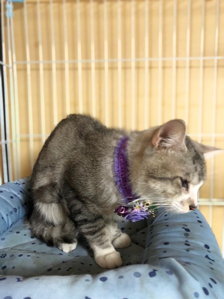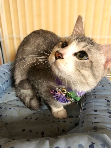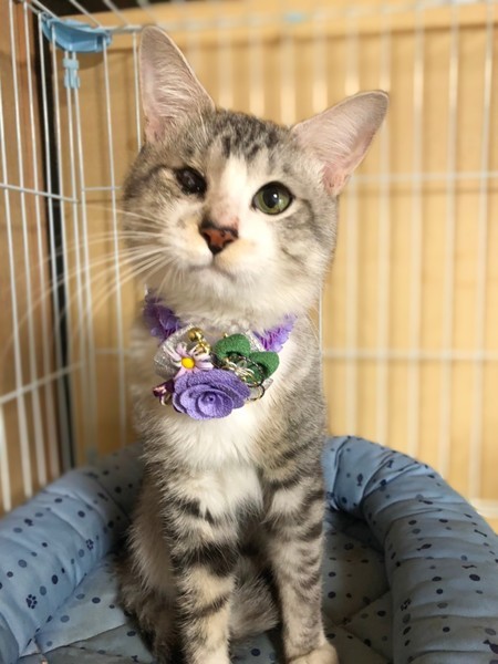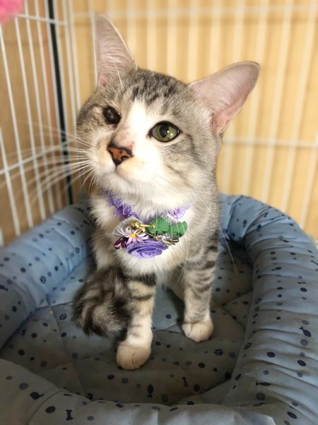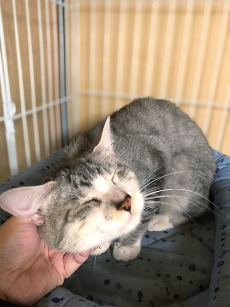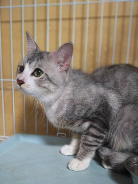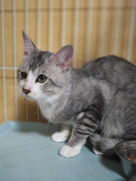 | 特徴(性格など) | グレーと白柄の男の子です。 保護した日に病院で目を診察してもらいましたが幼少期になったものではないかと・・ 生活には支障は全く無く、高い所にも登ったりしています。 甘えたさんで穏やかな性格をしていて、とても飼いやすい子です。 他にも大人の猫ちゃんで飼いやすい子が沢山保護されています。 シニア世代の方や単身者の方も是非会いに来て下さい。 |