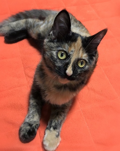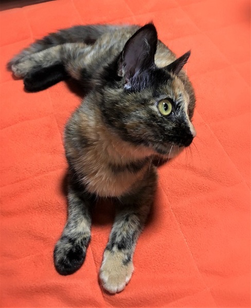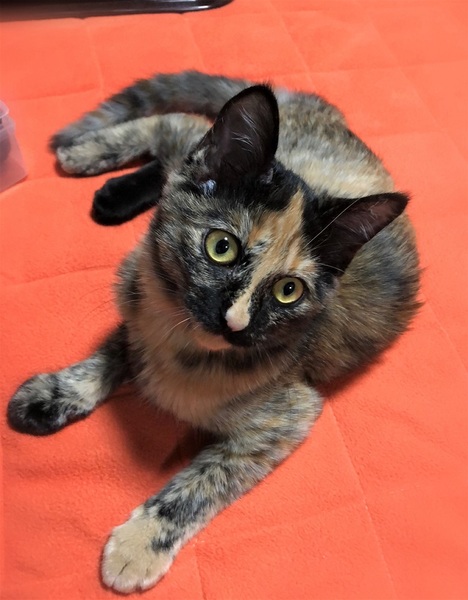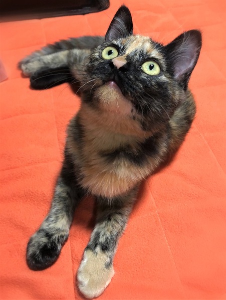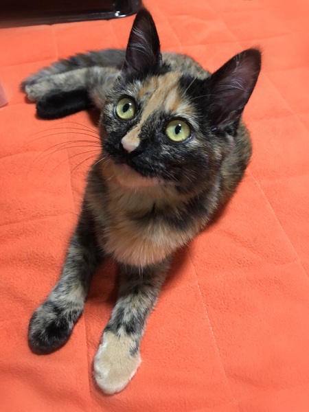 | 特徴(性格など) | 仮名、鼻筋くっきり・はなび ふわふわで、やや長目の被毛・さび柄女の子。 新しい環境に慣れるまで時間が必要です。 保護当初は、どきどき緊張した様子でしたが、今では目が合うだけでゴロゴロ~眠る時はぴったりくっついてくる甘えん坊さんになりました。 |