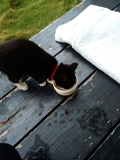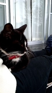 | 特徴(性格など) | シロクロちゃんです。 甘え上手でお膝大好き! 我が家のダックスと仲良してくれてます。イヌとも仲良く出来ると思いますので、よろしくお願いします |
