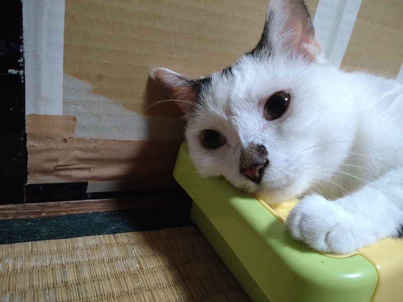 | 特徴(性格など) | 白黒柄で、とても甘えん坊で、冬は布団で腕枕しながら寝ます。カリカリが食べれず、猫缶しかたべません。 | ||