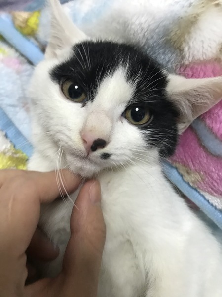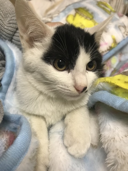 | 特徴(性格など) | 仮名ミント 顔の柄がとても特徴的です。 気が強そうな柄に見えますが実は性格はとても内気で物静かな子です。抱っこ中もおとなしく兄弟の中で1番優しい子です。 尻尾は鍵尻尾です。 性格も穏やかな子ですので先住猫ちゃんがいるお家でも問題無いと思います。 |