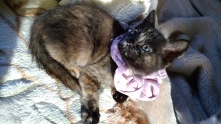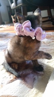 | 特徴(性格など) | 仮称「こつめちゃん」 容姿:ウルウルの大きな瞳が本当に愛らしい、とても美形のサビ仔猫ちゃん。まっすぐ伸びた長いシッポも自慢の一つです。女の子らしい丸顔が愛嬌満点で、とても可愛いと思います。見た目も性格も文句なしのアイドル子猫です。 性格:人懐こさバツグンで、初心者さんにもお勧めの可愛い子猫。好奇心旺盛で遊び盛りですが、とても従順な甘えっ子こです。画像のようにお顔を「クニュクニュ」されて。おでこやほっぺに「チュッチュ」されるのが大好き。〝赤ちゃんダッコ〟や〝肩乗りニャンコ〟など色々なスキンシップをしてくれます。人の体の上で喜んで遊ぶ子です。保護主さんや行政の方から愛情を受けて育っているので、素晴らしい家庭猫になると思います。 食事:離乳中、子猫用ドライフ-ドをミルクやウェットフ-ドでふやかしたものを与えています。 排泄:トイレの躾け済。 医療:駆虫(ブロ-ドライン)済・検便済・1回目の3種ワクチン接種済・月齢が小さいため、血液検査はまだできません。 月齢:2ヶ月位(10月25日頃生まれ) 体重:700g弱位(12月19日現在) 健康状態:食欲旺盛で元気です。 他猫:兄弟猫とはもちろん仲良しですし、動物病院の成猫や犬にも自分から寄っていき甘えていました。先住犬猫に攻撃性がなければ、共生に問題無いと思います。 |