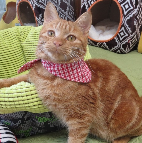 | 特徴(性格など) | 『良い子すぎて危なくて心配』との言葉どおり、大変に良い子です。 毛はやや長めで、茶色のはっきりとした綺麗な渦巻き模様と、先まで太い見事な尻尾が自慢です!(笑) ちゃー太くんは甘えん坊で、人にされることに何の違和感も持たない子です。食欲旺盛、遊びも大好き。人が好きで人との生活に馴染んでいる子ですので、うんと温かく可愛がって頂ける飼い主さまを希望しております。 |