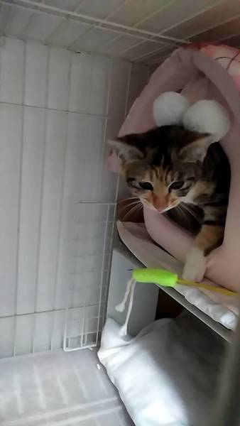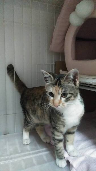 | 特徴(性格など) | 三ヶ月半の三毛猫ちゃん女の子です。 健康状態がとても良く、元気でとても愛らしい子です。 甘えっ子でトイレもきちんとして尻尾の長い美猫です。 |
