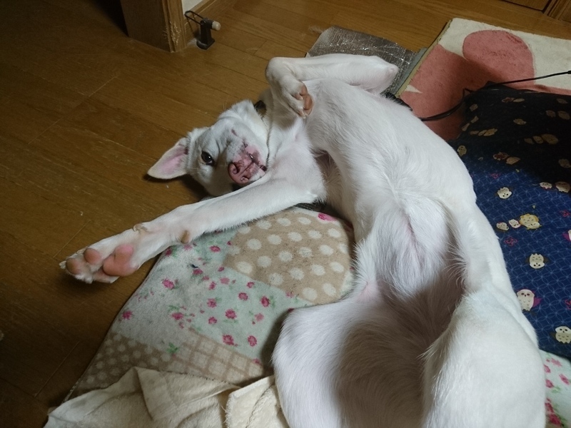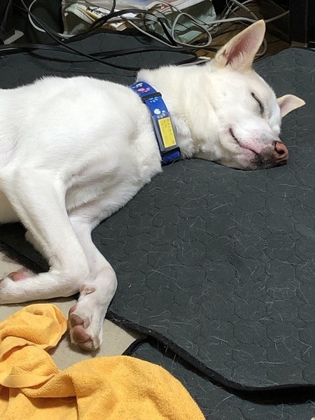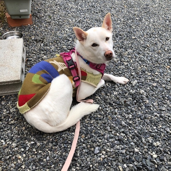 | 特徴(性格など) | 仮名:満天 雑種犬 体重:15~16kg 狂犬病予防接種済み(2020/7/4) 真っ白で散歩中「綺麗なワンコね~」と言われることも多々あります 何をするのも全力でする子 初めての人、生き物、環境には警戒します 自分だけを可愛がってもらいたいタイプなので多頭飼いは向きません。 小さなお子さんのいる家庭にも向きません。 人のそばが好きで隣に居たがる子です。 |
