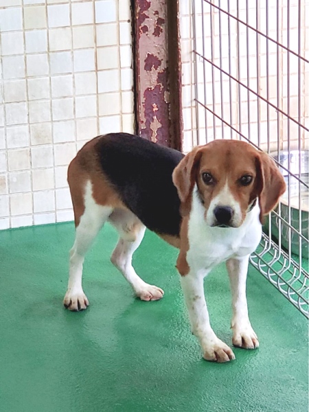 | 特徴(性格など) | 小柄で臆病、でも人が大好きな可愛いビーグル君ฅ•ﻌ•ฅ 見た目の推定になりますが年齢は5〜7歳位、現在の体重は大体8キロ前後位でしょうか。 右目がチェリーアイなので早急な治療を必要としております(>_<) 怖がりさんで大人しく、お座りやマテなどは知らない様子です。毛並みはさほど悪くはありません。 優しい職員さん方が怖くないよ、今度こそは幸せになれます様にと毎日触れ合いながら、一生懸命にお世話してくださっています。 何もかもが初めての知らない場所、環境になるので無理もありませんが怯えていてまだ吠えていません。 でも慣れた職員さんには収容当初に比べると段々と心を許してきてくれて尻尾フリフリバタバタ♪すり寄ってきて撫で撫でも嬉しそう、手からおやつを食べてくれる様にもなりました! 今までどう生きてきたのか、猟犬に使われていたのか放し飼いされていたのか…リードでのお散歩経験が無い様子で、急に走り出したりするので現在練習中です(^^) お散歩がよほど嬉しいのか首がもげそうな程ぐいぐい行きます^^; リードの引きは強めでも、小柄なので普通に歩けますが、急な走り出しや後退りからの首輪抜け・胴輪抜けなども想定し、どんな子でも油断禁物で脱走、逃走には充分な配慮と注意が必要です! ※走り出したらピャーッの一目散タイプだと思われます※ m(_ _)m 人や新しい環境に馴れるまでは少し時間を要するかと思われます。 怖がって逃げよう逃げようとする可能性も大いにあります。 適切に制御し、躾や朝晩のお散歩、運動の時間をしっかり取ることの出来る、沢山優しく触れ合って頂ける方、 先ずは室内でじっくりと時間を費やし触れ合い、ゆっくりと信頼関係を作っていく事の出来るご家庭を希望しております♡ 人間が焦らずにゆっくり長い目で見守りながら、愛情を持って接すればこの子ならきっとじきに新しい家庭に馴染んでいけるのでは、本当は思い切り甘えて遊んでほしいのだと思います。 辛い過去がある事も踏まえ、人は怖くないんだよと、人を信じてくれる様に、広い心で例え長期戦でもドンとこい^_^と仰って頂ける方、この子を尻尾フリフリ♪ニコニコの笑顔にしてくださる方、いらっしゃいませんか? どうぞ宜しくお願い申し上げますm(_ _)m ⭐️必ず室内飼育で、譲渡後には速やかな病院受診・健康診断(血液検査、尿・便検査、ノミダニ・フィラリア予防やシャンプー等)去勢手術、混合ワクチンをする事が可能な、なるべくお留守番が少ない、沢山優しくスキンシップやコミュニケーションで触れ合っていただけるご家庭。 ⭐️室内でのトイレの躾も1からとなります。 未去勢で片足を上げて排尿します。 何かと手がかかり大変だと思いますが (マナーベルトやL字型のトイレ、ペットシートを用意など)覚悟と根気・理解で受け入れて下さる方。 ※譲渡後はお早めのチェリーアイの治療・去勢手術、その際に歯石除去も一緒にお願いしますm(_ _)m ⭐️出来れば中型犬の飼育経験があり愛情を持って犬をしっかり躾することが出来る方、お散歩や運動、スキンシップやコミュニケーションに充分時間をあてられる方、場合によりトレーニング教室なども視野に入れて考えてくださる方。 何卒宜しくお願い致します。 ⭐️吠えても大丈夫なご家庭。 ※混合ワクチン、狂犬病予防接種、フィラリア予防実績の有無が分かりません。 フィラリア陽性の可能性も0では無くあり得ることとなります(>_<) 以上の点を踏まえ、この子の置かれている状況、寂しくて不安いっぱい、傷付いているであろう心をご理解のうえ、全て受け入れ寄り添っていただけるご家庭で終生可愛がっていただきたいと祈っております。 保健所収容された全ての子達は身勝手な人間による被害者であり、何も悪くありません( ; ; ) 1日も早く温かな愛情を目一杯注がれながら、元気に幸せに生きてほしいです。人間より遙かに短い生涯です。 冷たく硬いコンクリートの上、狭い檻の中でひたすら優しい素敵な里親様を待ち続けています。 悲しい事にこの世の中、人間に飼われないと犬は生きていく事が出来ません。 捨てる飼い主、探さない飼い主、医療にかけない飼い主、虐待する飼い主…飼い主を選ぶ事も出来ません。まだまだこれからのこの子を生涯大切に可愛がって下さる優しい素敵な里親様、どうかお願い致します。きっと、必ず唯一無二の最高の家族になります! もうこれ以上悲しく辛い目に遭わせたくありません。本当の愛情、温もりを知ってほしい、辛かった分、寂しかった分、まだまだこれからの犬生はのびのびと幸せいっぱいに愛し愛されて、生きてほしいと願っております。家族の一員に迎え、愛情溢れるご家庭で一緒に暮らして頂けませんか。 何卒宜しくお願い致します(๑•ᴗ•๑)♡ https://dog.benesse.ne.jp/lovedog/content/?id=15698 ◆健康状態 今のところ元気にしていてご寄付で送って頂いた栄養価の高い良質なフードを食べています。 ⭐️右目にチェリ