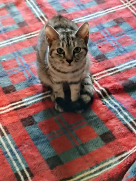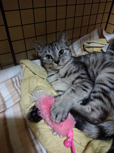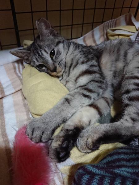 | 特徴(性格など) | アメショー風キジトラ、2キロ前後、他猫好き、人馴れ途中、手からご飯、足元スリスリ、猫じゃらし大好き、猫パンチ、撫でたり抱っこはまだ無理、耳カット有り、月齢は推測、 | ||