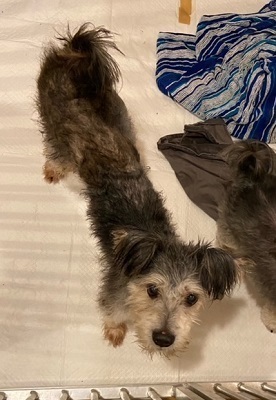| 特徴(性格など) | ※近日中にトライアル開始予定です。実際にトライアルが始まりましたら里親募集はいったん終了させて頂きます。 ●仮名「テリボー」です。 ●人が大好きで甘えっ子。 遊ぶのも大好きです。 人が大好きで甘えるくせに、テリア気質なのか、今までの飼われ方のためなのか、たまにわがままな一面がありましたが、合宿所での集団生活の中で社会性を身につけてとても良い子になってきました。迎合することなく、信頼関係が築ければ、人に従順で素直な、可愛いわんちゃんです。 ●お散歩大好きで、よく歩きます。 トイレは外派で、お散歩まで我慢します。 ●保健所から引き出した時は、大量の毛玉がフェルト状になり、まるでよろいのようにしっかりと体にくっついていました。 2人のボランティアさんが少しずつ気長に毛玉取りを行って下さり、さらに去勢時の麻酔下で獣医さんにも毛玉取りを行っていただき、すっきりしました。 |