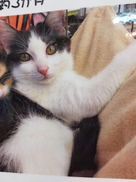 | 特徴(性格など) | 白黒ハチワレ とっても甘えん坊です。 同時募集のベルちゃんと仲良し兄妹です。 兄妹一緒に迎えて頂けると嬉しいです。 |