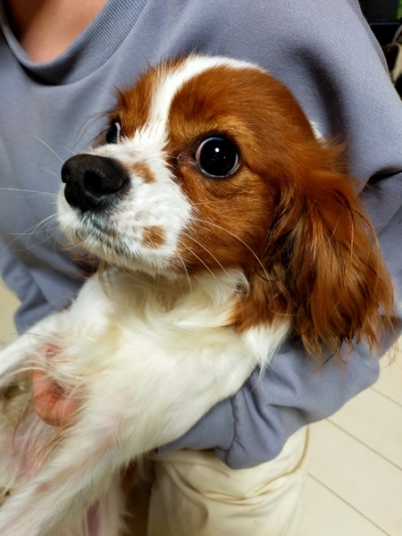 | 特徴(性格など) | 穏やかで、ほとんど吠えません。キャバリアらしく、誰にでもフレンドリーな子です。トイレはほぼシートでできますが、たまに失敗あり。 | ||