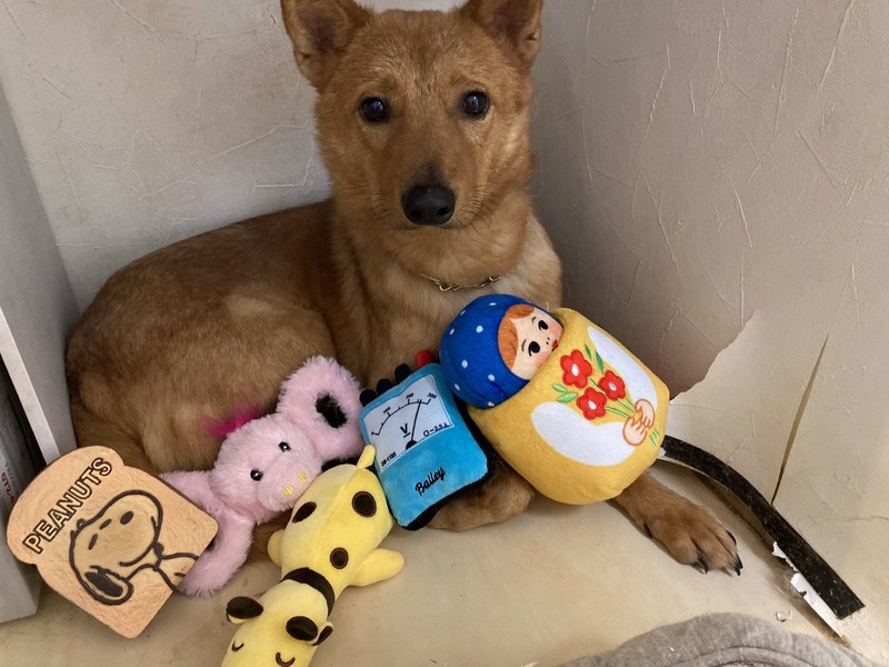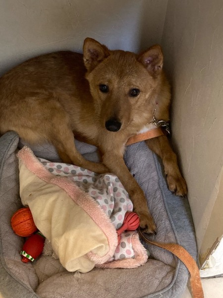 | 特徴(性格など) | 推定2~3歳くらいの雑種の男の子です。 体重は13kg前後です。 臆病で人見知りしますが、わんちゃんは好きなようです。 人慣れの練習中で、だんだん人に慣れてきてくれています。 |