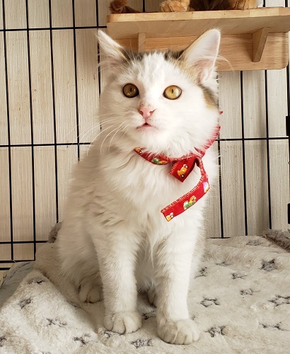 | 里親募集する理由 | 餌やりさんがご飯をあげている現場に突然1匹で現れたそうです。その現場で同じような月齢の子猫も産まれ、これ以上増えるとご近所トラブルになると言うことで保護しました。 | ||