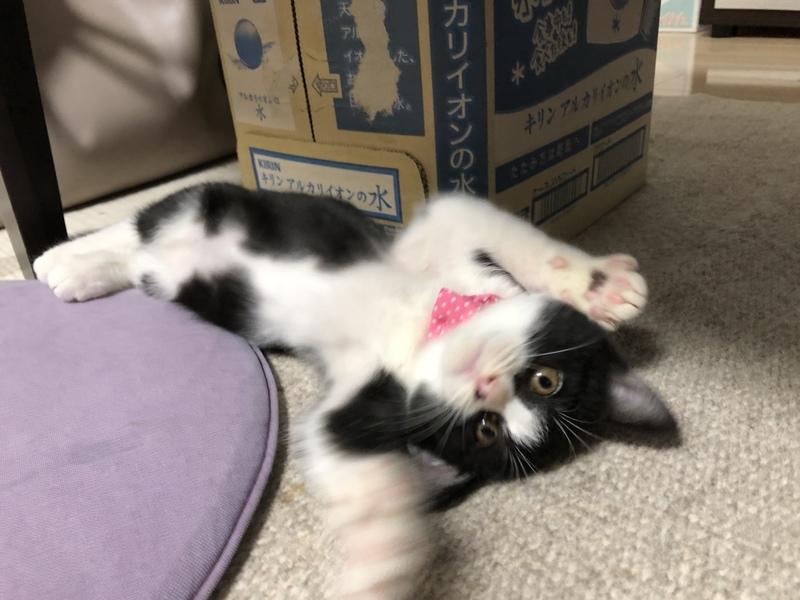| 特徴(性格など) | ハチワレ白黒の女の子です。子猫らしく元気でお転婆でなところもありますが、トイレも出来て夜も静かに寝てくれます。抱っこもできて良い子です。白血病とエイズ検査は陰性です。 | ||