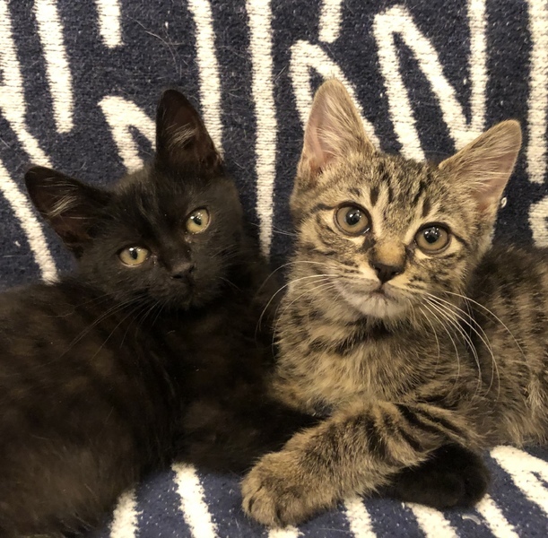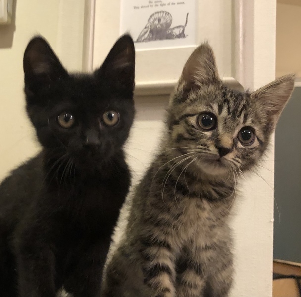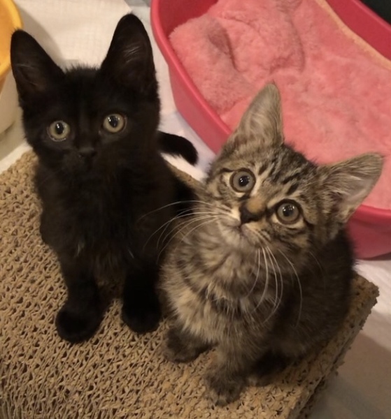 | 特徴(性格など) | 黒猫の男の子はルイ君、キジトラの女の子はモエちゃんと名付けました。とても仲良しで、寝るのも遊ぶのも2匹一緒。遊ぶ時は追っかけっこをしたり戯れあったりしていますが、疲れると電池切れしたようにコトンと寝てしまいます(笑)。穏やかな性格で、甘えたい時は人の膝に乗りゴロゴロ言いながらウットリしています。2匹一緒に飼って頂ける方、また幼齢の子猫ですので、お留守番時間の無い方を希望します。 | ||