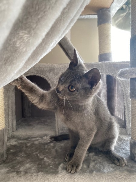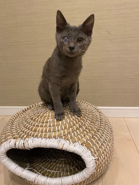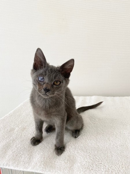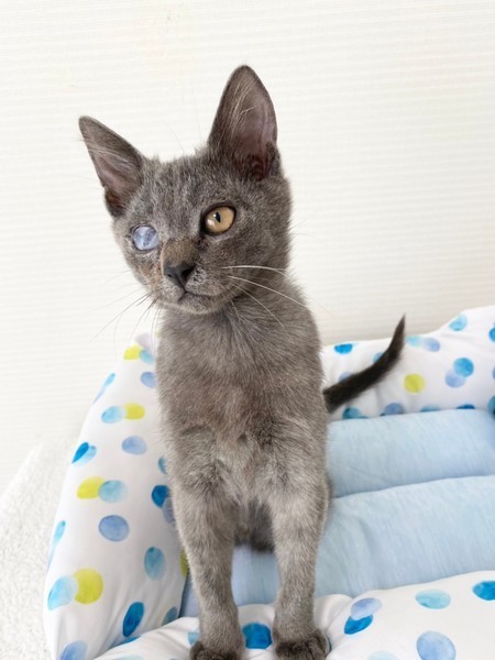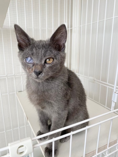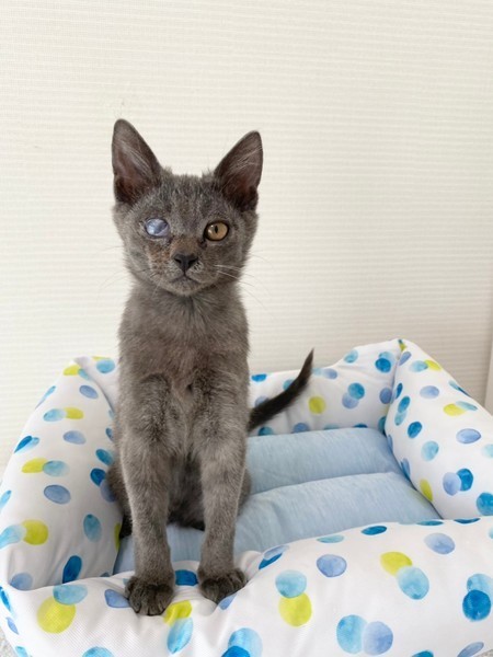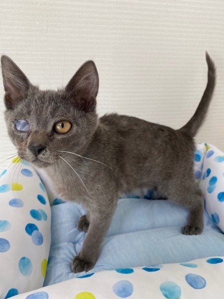 | 特徴(性格など) | 2020.9.1生まれ(推定) 毛色:グレー グレーでしっぽの先がちょっと白いところがチャームポイントの航。 右目は視力がありませんが、大きなキラキラおめめで、ニャーニャー鳴いて甘えてくれます♡ 少し怖がりな所もありますが、慣れるとすぐスリスリしてくれます。 ネズミや小さいボールを追いかけたり、兄弟の泳と追いかけっこをして遊んでいます。 |
