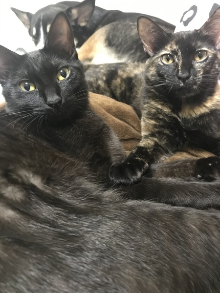 | 特徴(性格など) | 黒猫 女の子 月齢9ヶ月 遊ぶの大好き!! 遊んでやオヤツなど 構ってと可愛く鳴いて 側に来ます。 甘えん坊さんです。 サビ猫 女の子 月齢7ヶ月 怖がりさん警戒心高めですが 信頼関係築くと 側にいつも寄ってきて とても甘えてきます。 撫でるとずっと側にいます(笑) 2匹ともべったりと 仲良しな為2匹一緒に 譲渡したいです。 |