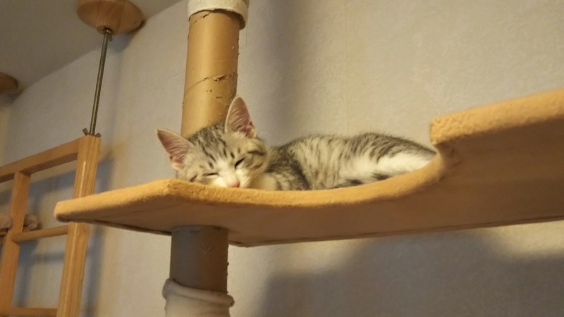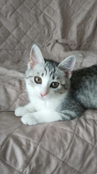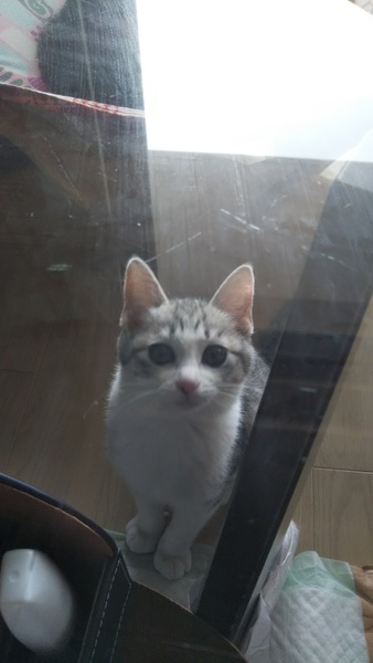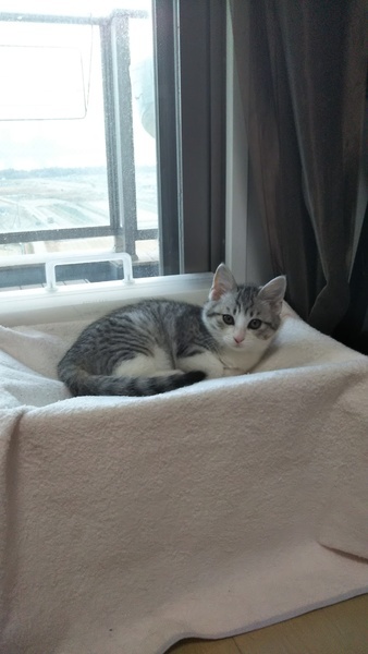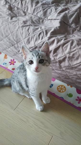 | 特徴(性格など) | グレーのサバ白で、毛がフワフワしています。好奇心旺盛、食欲旺盛、元気いっぱいの女の子です。人慣れもしていて、猫同士で遊ぶのが大好きです。 | ||