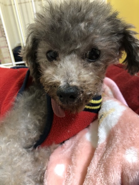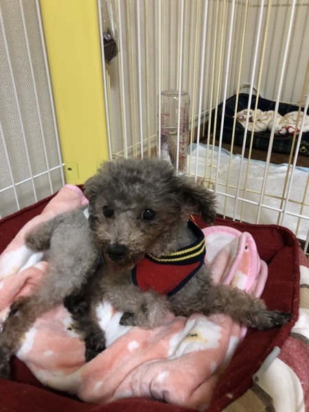 | 特徴(性格など) | トイプードルの蘭丸君 男の子 10歳ぐらい 体重2.5キロ(保護時)➟2.9キロ(現在) ワクチン済。 去勢手術予約済。 シルバーの毛色 小さな体のかわいい子 蘭丸君。 この年齢まで我慢の多い生活を送ってきて、今やっと、人と暮らす幸せを感じているところです。 今までできなかったこと、感じられなかった安心感、ふわふわのベットとか、暖かい明るい空間とか、優しい友達とか・・・可愛いって言ってもらえること、抱っこしてもらうこと。すべてが蘭丸君にとっての心と体の栄養となっています。 まだ、知らないこと、これからお勉強していくこともたくさんあると思いますが、素直でおとなしい蘭丸君ならがんばって覚えていってくれると期待しています。 お年寄り犬と暮らしたご経験のある方ならお分かりいただけると思いますが、 何とも言えない味わい、たたずまい、後ろ姿が、愛おしい子です。 残された時間を共に過ごしていただけるご家族を探しています。 人懐っこく、おとなしく抱っこされます。 人間にかまってもらうことが好きで後追いして歩く可愛い子。こちらが忙しくしていると、今は、無理なんだ~と悟って、自分でゲージに入って大人しく寝ています。犬とも仲良くできます。 初めての音や環境には、ちょっと怖がります。 お散歩も少し行けるようになりました。 食欲はしっかりあって、ふやかしフードを食べています。 無駄吠えもありません。 おトイレは、現在まだおしっこが安定していなくてマナーベルトを日常的に使用しています。 去勢手術が済み体調が整うと、もう少しよくなってくると思います。 年齢的に避けられないいくつかの身体的な注意点がございますので、 うまく付き合っていただけたらと思います。 ★体調面でのお願い★ ①心臓の増幅弁閉鎖不全と診断されています。ただせきなどの症状はなく、初期レベルの投薬をしています。月に2400円ほどのお薬代がかかります。 ②歯がありません。歯が抜けたまま穴がふさがっていないところもありますが、すでに長期間そのままで過ごしているため、手術などは不要との診断です。ふやかしご飯を食べています。歯がないため、舌がペロンと出ているところもチャームポイントです。 |
