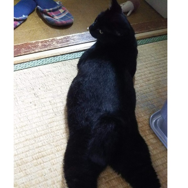 | 特徴(性格など) | 真っ黒にみえますが日に当たると茶色の毛も混ざってます。 温厚でとてもおとなしいです。 ご飯大好きで小柄ですがちょいぽっちゃり |