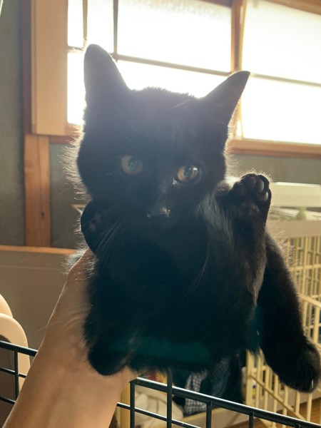 | 特徴(性格など) | まだ少し怖がりさんですが…抵抗のない子で愛くるしいニャンコ、モチモチ。3.5ヵ月位の男の子(推定)です。 緊張すると固まっちゃうタイプ?? そのせいで伝統芸能かの様に掌で丸くなっちゃっうという、お笑い特技持ち。 でも実は緊張で固まってるのに、撫でてあげると喉だけは盛大にゴロゴロ鳴らしてるんです(笑) コレは家庭に迎え入れて頂き心さえ開けば、かなり飼い主さんに忠実でストーカー並のデレ猫になりそうな予感!! モチモチの特徴は、毛がフワフワで、血族にすこーし毛長さんの遺伝子が入っているのかな??と思わせる毛並み。(冬生まれの子猫が故説も…。)そして、子猫なのにシャープな豹タイプのお顔。顔、特に目元がメインクーン系に見えます!(保護主の勝手な主観です)。 健康状態 隔離期間終了の年明けに血液検査・ワクチン1回目実施予定。 対内外害虫駆除済み。 去勢手術:未 |
