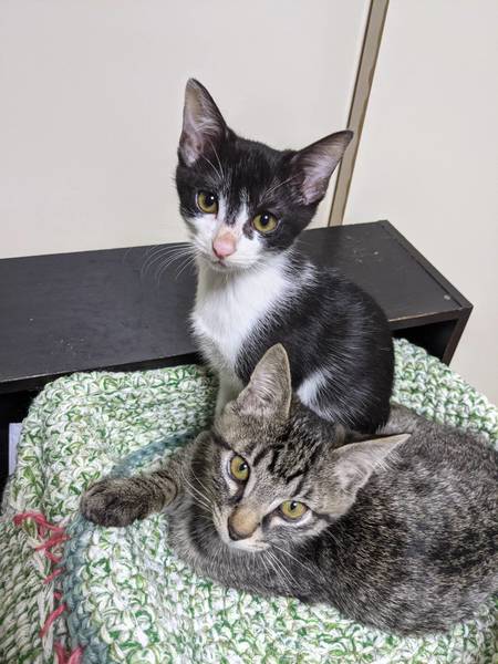 | 里親募集する理由 | 友人の代理募集です。 10月末に家族の勤務先に置き去りにされた仔猫の兄妹です。 捨てられたのかと思いましたが、のみ駆除3回でキレイになりましたので 親猫からはぐれてしまった仔たちかもしれません。 掛かりつけの動物病院の先生曰く、生後45日くらい。 逆算して9月の中頃の誕生日でしょうとの事です。 上にも書きましたが、かなり発育が遅れていたようですが、 食欲旺盛、たくさん遊んで寝て、今では無事1kgを超え ツヤツヤの美人さんになりました。 友人宅には既に3匹、我が家にはFIVキャリアの8歳、14歳がいる為、 今回、里親さんを募集させていただく事となりました。 どうぞよろしくお願いします。 |