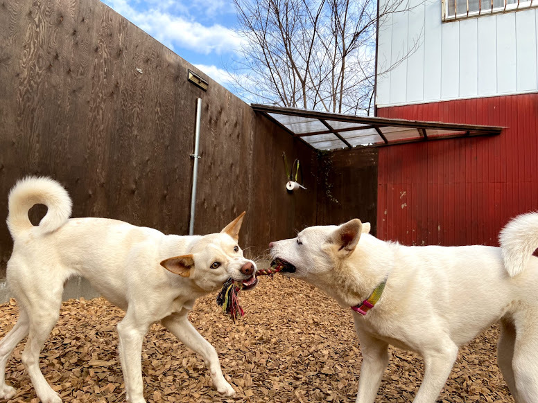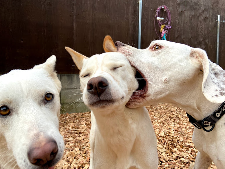 | 特徴(性格など) | 【Name】Celeste (セレステ) 【Age】推定1歳前後 【Breed】雑種 【Weight】13kg 容姿端麗なセレステ。まだ1歳前のパピーです。現在体重13kg程度で、もう少し大きくなるかなぁといった印象です! 子犬チームと転がりまわって遊んだり、成犬たちにくねくね甘えたり、ベッドの下でスリッパを破壊したり…(笑)得意技は穴掘りです。 落ち着いて見えますが、まだまだやんちゃ盛りで、全力で遊んでいます♪ もともとは立派な野犬で、保護時には隅っこに隠れ、逃げ、パニック!でした。 現在は他の犬達からのサポートもあり、人に撫でられる心地よさに目覚めました。甘えん坊さんではありますが、女子特有の賢さ、凛としたしたたかさ(笑)もしっかり発揮しています。 基本的には穏やかで他の犬も好きですが、チャカチャカしたタイプの犬は苦手です。自分がクレートで休んでいるときや、ご飯の時に周りでガチャガチャされると怒りますが、少し声をかければ我慢もできます。聞き分けのよい賢い子です。 おいしいものも大好きで、不安や恐怖よりも食欲が勝りがちです。 まだまだ心を開いていってあげる必要がある子ですが、おいしいもの好きなので食べ物をとっかかりにいろんなことにチャレンジできる子だと思います。 お散歩は現在トレーニング中です。 交通量が多い道や大きな横断歩道などでは緊張した様子ですが、だいぶ歩けるようになってきました。 こちらでも引き続きトレーニングに努めてまいりますが、逸走・脱走防止のため、里親様にもトライアル開始前に何度かこちらへ通っていただきながらハンドリングを学んで頂いたり、譲渡後も引き続きトレーニングを継続していただく必要があります。 怖がりで慎重なセレステですが、まだまだ“知らない”だけで“出来ない”わけではありません。 きちんとセレステと信頼関係を築いた上で、いろんなことにチャレンジさせてあげられるように導いてくださる里親様を募集しております。 聡明なセレステときちんと関係を築くことが出来たら、素敵なパートナーとして豊かな時間を共有出来る事間違いなしです! |