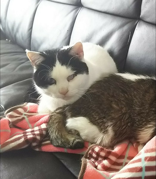 | 特徴(性格など) | 毛色は、白黒のハチワレです。 頭と、尻尾だけ黒くて他は、全身まっ白で、ふわふわした綺麗な毛並。 短毛です。 交通事故に遭い 下顎骨折してましたが完治しています。 目がほとんど見えてないそうです。 白濁しています。 トイレは、躾されていて トイレシートにしていますが 完璧です。 トイレシートを折り畳み、包んであります。 綺麗好きでベットや、部屋を汚したりしません。 落ち着いた子なので 留守番中にいたずらもなく 良い子にしています。 甘えん坊で人懐こいです。 私の家のワンにゃん、どの子とも 仲良くできてフレンドリーで 優しい性格です。 目は、事故のせいか、小さな頃から見えいないのかは不明です。 炎症も痛みもなく、生活に支障なく 元気にしています。 猫エイズ陽性ですが 発症してないので このまま、元気に過ごせますように 優しい里親さんと出逢えますように 願っています。 ワクチン済み 去勢手術済み 健康診断済み ノミダニ駆除済み 下顎骨折治療済み 検便済みで異常なし。 ウィルス検査済み 猫エイズ陽性 白血病陰性です。 |