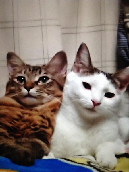 | 特徴(性格など) | 茶色のキジトラちゃん。毛が長く、気品が溢れています。食欲旺盛。怖がりですが、慣れると、ベタベタちゃん。トイレは、トイレ砂に、きちんと行ってします。爪研ぎも、爪研ぎでします。人間の言葉を理解していると思います。 白色の少し柄が入っています。性格は、おっとり。トイレはトイレ砂に行ってします。爪研ぎは、爪研ぎでしません。結構すぐに人間になれる方だと思います。慣れるとベタベタ。お利口さん。 |