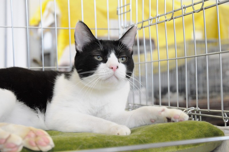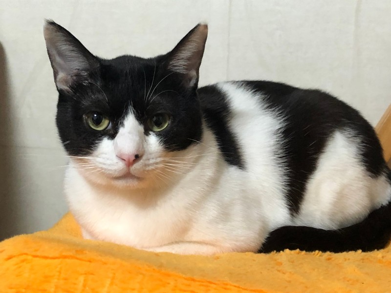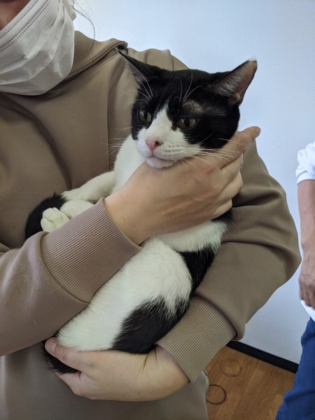 | 特徴(性格など) | 2014.4.15生まれ(推定) 毛色:白黒 くっきり分かれたきれいなハチワレ模様の白黒男子♂ むっちりしたボディとお鼻の黒ポチがチャームポイント♪ 初めはシャー!でお出迎えしちゃうけど、ホントはナデナデ大好きな甘えん坊♡ 撫でてあげるとゴロンゴロンしながら甘えてくれますよ☆ おしゃべり大好きな性格で、慣れている人を見ると一生懸命話しかけてくれます。 ツヤツヤな毛並みは撫で心地抜群!! 是非、むっちり艶々ボディを撫でてみて下さい♪ |