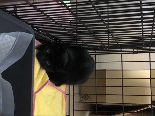 | 特徴(性格など) | 目がまん丸な黒猫です。保護して5日ほどですが、好奇心旺盛でよく遊び、よく寝ます。まだ怖がりますが、触っても嫌がりません。 | ||
