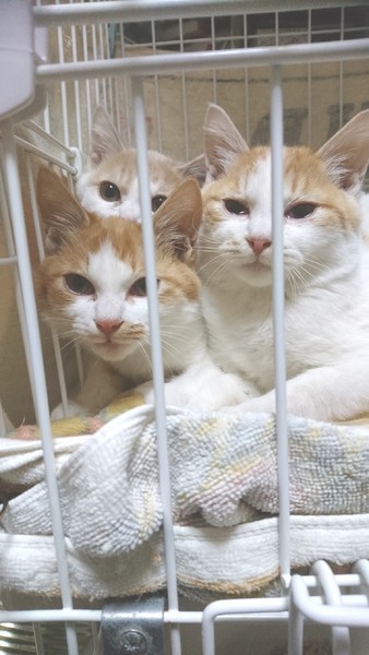 | 特徴(性格など) | 【川崎市地域猫活動サポーター 三舞町ねこがかり】 仲良し三兄弟の里親さん募集です! 毎日、3匹猫饅頭で寝ています❤ (1枚目の写真手前から順に、個別写真もこの順です。) 名前 :ロン(仮) ~正統派イケメン男子 保護時の体重 :1.6kg 特徴 :やや薄めの茶白、キレイなロングテイル。 性格 :落ち着いた雰囲気のしっかり者! 名前 :ボブ(仮) ~ゆるふわ癒し系おっとり男子 保護時の体重 :1.8kg 特徴 :白地にミルクティ色のぶち模様、尻尾は短め。 性格 :とてもおっとり、一番の食いしん坊! 名前 :ちゃ~(仮)~キレカワ系イケメン男子 保護時の体重 :1.7kg 特徴 :赤みがかった茶白、キレイなロングテイル。 性格 :ちょっと慎重、気が強めなところもありますが、とても賢く人馴れも順調! ⭐︎保護日 :2020年12月18日~22日 ⭐︎初回ワクチン接種済み(ロン・ちゃ~2020年12月23日、ボブ2021年1月4日) ⭐︎ノミダニ駆除済み ⭐︎駆虫済み ⭐︎トイレトレーニング済み ★2021年1月25日に不妊去勢手術、マイクロチップ挿入、ウイルス検査実施しました。 白血病・FIVともに陰性です。 ★2月初旬に2回目ワクチン接種予定です 保護当初は警戒心が強く触るのもお互いドキドキでしたが、今では目薬点眼の際も大人しく抱っこさせてくれます! (ちょっと風邪気味でしたが、目の腫れも引きほぼ治っています。) 全員健康状態良好、食欲も旺盛です! 外で暮らしていた時からとても仲良く、いつも三兄弟揃って遊んでいました! ●1匹もしくは2匹譲渡要相談 ●三兄弟はいつも一緒で仲が良いので、一緒にお迎えしてくださる方を優先させていただきます! |