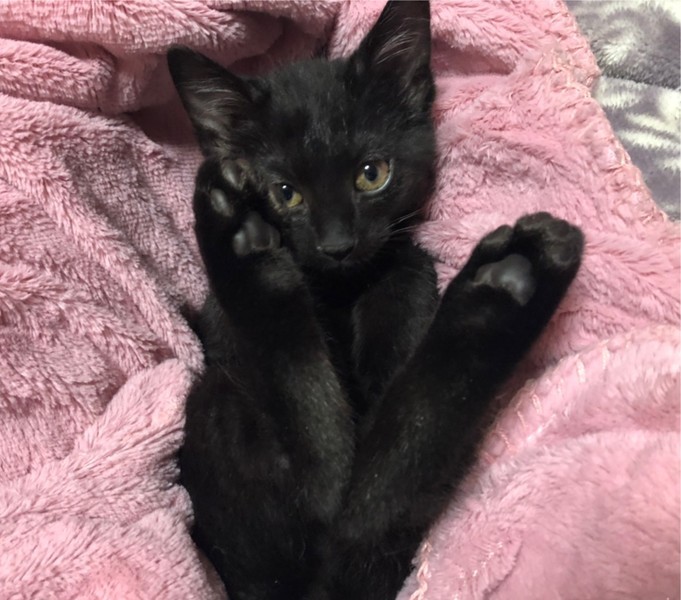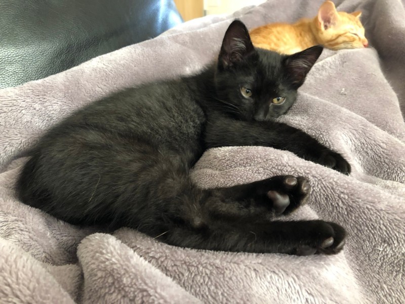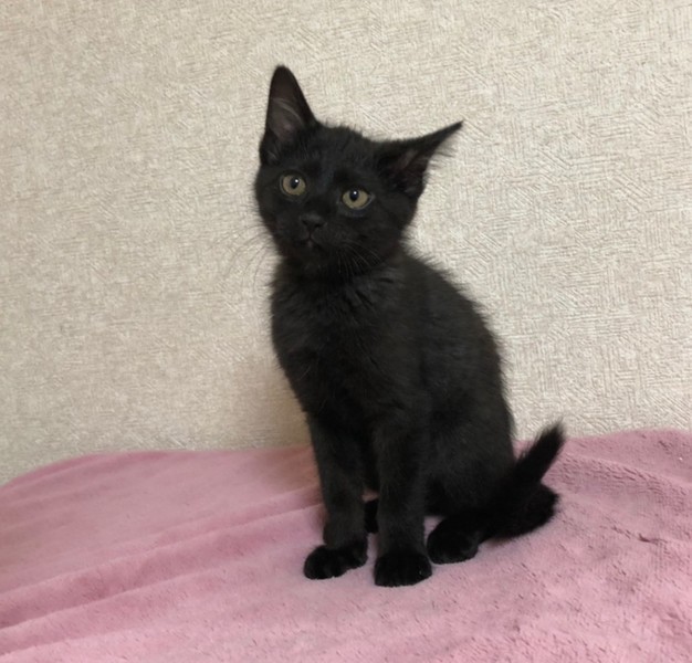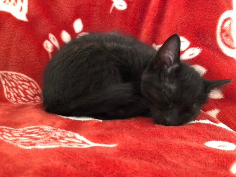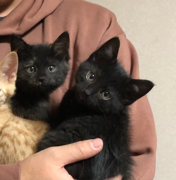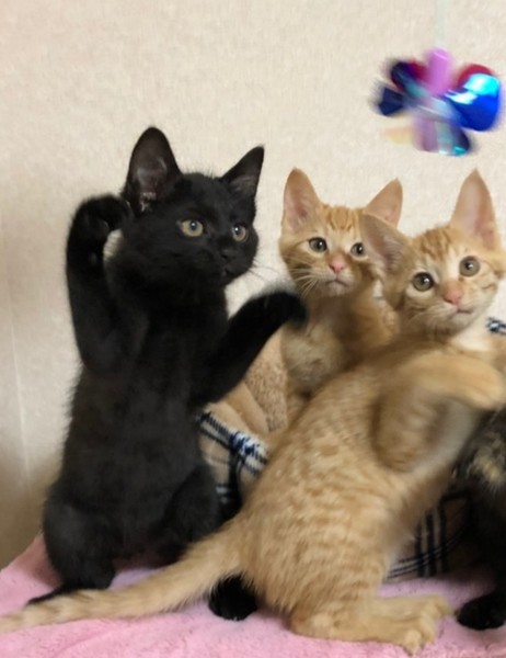 | 特徴(性格など) | 2020.10.19生まれ 毛色:黒 耳毛だけちょっぴり白毛交じりの黒猫男子。 兄妹の中で一番大きく、しっかりした男の子らしい身体つきです! いつも兄妹仲良く過ごしていますが、大きな体が邪魔にされるのか・・・ 一緒に寝ていると兄妹の下敷きにされる事もしばしば。 動くオモチャが大好きで、ボールやキャッチミーをいつまででも追いかけ続けています♪ ご飯大好き、遊ぶの大好きな元気っ子ですが、人一倍甘えん坊で、遊び疲れると傍まで寄ってきて抱っこして~とアピールしてくれます♡ そのままお膝や腕の中でへそ天しながらそのままウトウトする姿が可愛すぎます。 |