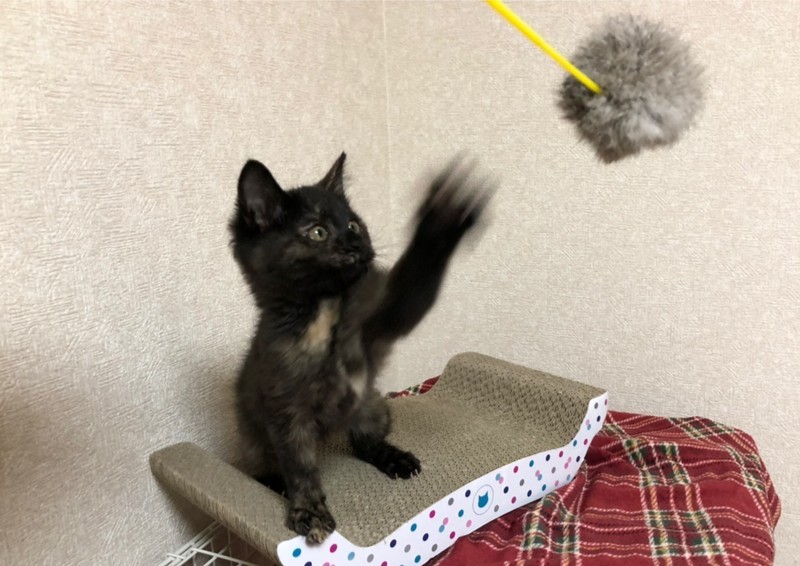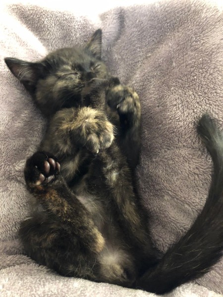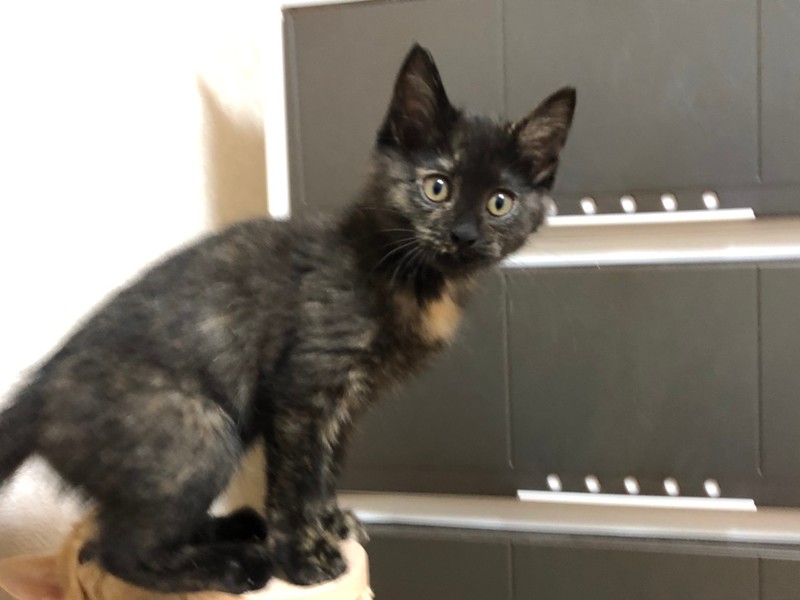 | 特徴(性格など) | 2020.10.19生まれ 毛色:サビ クリクリのおめめがカワイイさび猫ちゃん。 モフモフしているので、体が大きく見えがちですが、一緒に家猫修行中の兄弟と比べると一回り小柄な女の子。 おっとりした性格で、大人猫にもあまり物怖じしないマイペースタイプです。 抱っこが大好きな甘えんぼさんですが、人よりも猫が好きなのか、兄妹や大人猫達が寝ている所に寄り添ってゴロゴロ鳴らしています。 大人猫のしっぽが大好きでシャーされても、くじけずに尻尾を狙いにいく強者でもあります(≧▽≦) 足元に来てちょこんと座りこちらを見上げながら、みにゃ~と何か訴えている姿が可愛すぎて癒されます♡ |