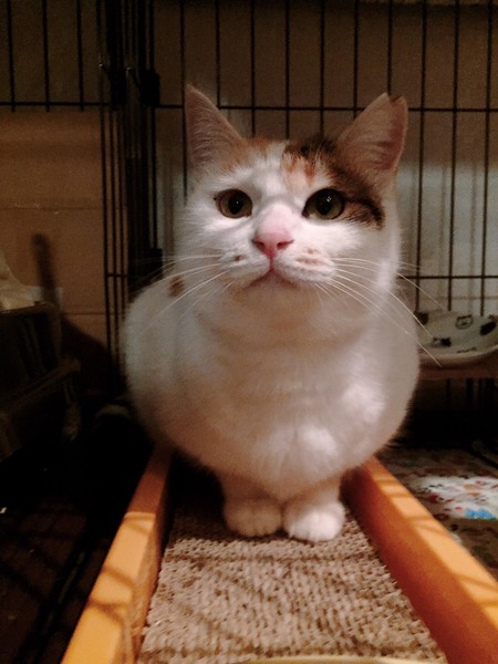 | 特徴(性格など) | 薄めの三毛猫さんです。 優しい顔立ちで、性格ものんびりさんです。 保護するときもすんなりキャリーに入ってくれました。 今は娘とケージで暮らしています。 |