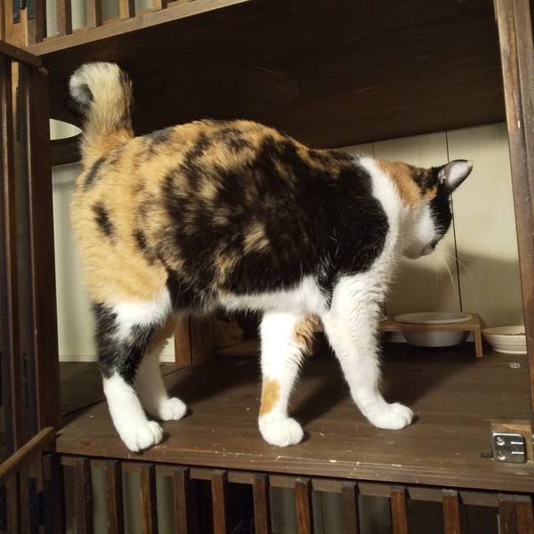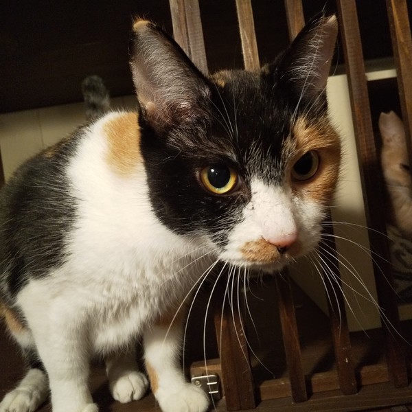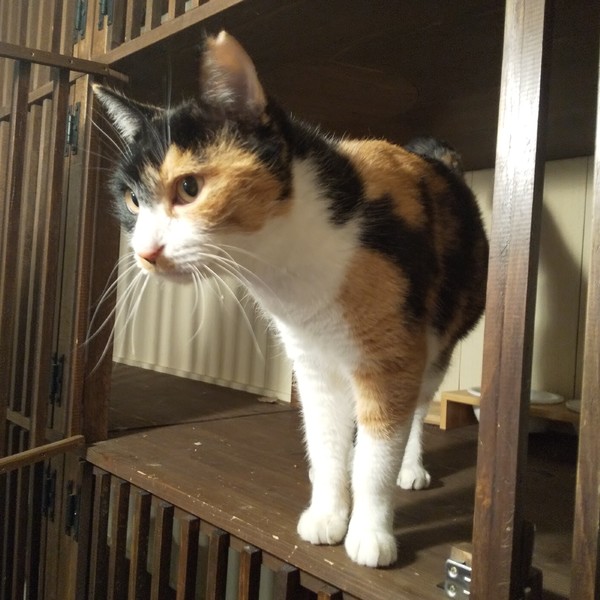 | 特徴(性格など) | 仮名:もも 毛色:3色のバランスがいい三毛 瞳の色:明るい茶 尻尾:長くて先がカーブしています 性格・特徴:今回の多頭飼育崩壊宅から来た子の中で、今のところ一番大きな女の子。 5.5kgくらいあります。 白、黒、茶の分量が同じくらいのキレイな三毛ちゃんです。 ほんの数日でベタベタ、スリスリ、ゴロゴロになりました。 顔にスリスリしてくれるのがとてもかわいいです。 性格はやさしくておっとりしています。 これまで劣悪な環境で辛い思いをしてきた分、愛情たっぷりに育ててくれる方を希望します。 猫同士で団子になるのが大好きなので、先住猫のいるお宅か、仲のいい子とペアでお迎えください。 システムトイレのしつけ済み。 左耳に桜カットあり。 |
