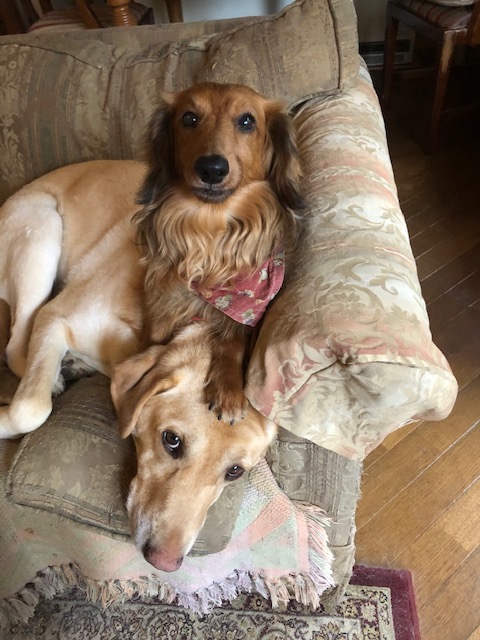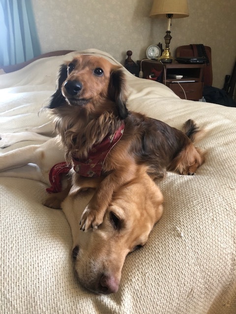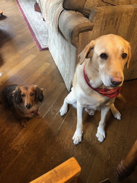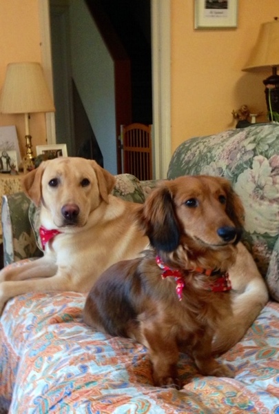| 特徴(性格など) | どちらも人間が大好きで、素直で明るい性格です。特にラブはボール遊びとフリスビーキャッチが得意です。2匹ともドッグランでの犬たちとの交流は慣れています。2匹ともある程度言葉が理解できます。留守の時にはケージの入れてますが、入れてない場合でも留守中にいたずらなど絶対にしません。 |