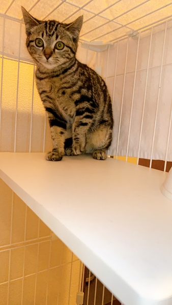 | 特徴(性格など) | まん丸の目がとても綺麗な子です! ビビりで警戒心が強いです。 ビビりちゃんは懐いてくれるとデレデレになる子も多いのでゆっくりお付き合い出来る方にお願いします。 毛艶がとても綺麗です! とても大人しくトイレも1回で覚えたお利口さんです。 粗相は一度もした事ないです。 餌はカリカリを食べていてうんちも毎日きれいです。 |