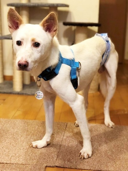 | 特徴(性格など) | MIXの『レクサス』です。 (ちばわんHP掲載番号No.4146)←申込時は必ず犬の名前とこの番号を記載し、下記内容をよくお読みの上ちばわんHPからお願いします。 ※「生まれた月日」は推定です。生育環境によって誤差が生じることがあります。 【毛色】白・茶 【体重】15kg 【状態】ワクチン接種済、狂犬病予防接種済、マイクロチップ装着済、フィラリア(+)、検便(ー)、ノミ・ダニ駆除済 【人馴】少し時間がかかります 【性格・その他】 穏やかで優しい男の子です。 今まで人と接する機会があまりなかったようで、経験不足からくる怖がりですが攻撃性は皆無です。身体のどこに触れても怒ることはありません。 他犬や猫とは仲良く過ごしています。ただ、外で見かける猫は追いかけようとすることがあります。 人を怖がることは少なくなってきましたが、不意に近づくと慌てて逃げようとします。撫でられたりハグは今でも苦手で、それが人の愛情表現だと理解ができていない様子です。 知らん顔をしているとそっと匂いを嗅ぎに来たりしますので、本当は人にとても興味があるのだと思います。今後経験を積んでいけば、変化していくと思います。 お散歩は大好きで、尻尾を上げてとても楽しそうに歩きます。 トイレは外派です。室内トイレを認識しつつありますが、雨などで散歩に行けない時はマナーバンドで対応することもあります。 お腹が緩くなり易く、食にもムラがあります。現在は消化サポート系のドライフードに茹でた鳥ササミや胸肉などをトッピングして与えています。 留守番時はイタズラすることもなく、お気に入りのソファーの上で寝て過ごしているようです。 フィラリアは陽性で、早期隠転を目指しボルバキア治療を開始しました。 少しずつ人との生活に慣れてきましたが、一度逃がしてしまうと捕まえることは困難です。散歩時の信頼できる犬具装着、室内での脱走防止対策をしっかり行ってくださる方とのご縁を希望しています。 引き続き室内飼育で、ワクチン接種やフィラリアの治療と予防など健康管理、脱走・逸走への厳重な注意と対策を必ずお約束していただける関東圏内のご家庭で、終生家族の一員として変わらぬ愛情を注いでくださる方からのお問い合わせをお待ちしてしております。 なお、小さいお子さんがいるご家庭、主にお世話をされるのが高齢の方のご家庭はお断りさせていただきますので予めご了承ください。 【預かり場所】千葉県千葉市 【ブログ】hinanon3450(インスタグラム) https://www.instagram.com/hinanon3450/ 【お申込み】 ちばわんの保護犬『レクサス』への申し込みはhttp://www.chibawan.net/contactform_dogからお願いします。 |
