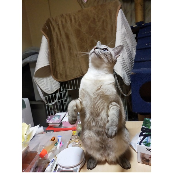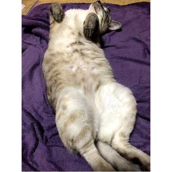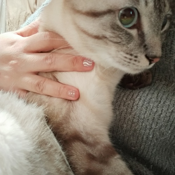 | 特徴(性格など) | 病院の先生からもイケメンと評判です。 トラとシャムのMIXみたいです。 トラが強いですが瞳がブルーです。 性格も温厚で滅多なことがない限りなきません。爪切りもどんとこいです。 もう1匹の猫ちゃんと一緒に保護したので多分兄妹だとおもいます。 男の子なんで体が大きいです。 |