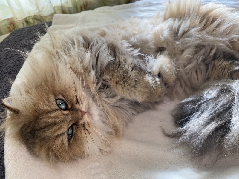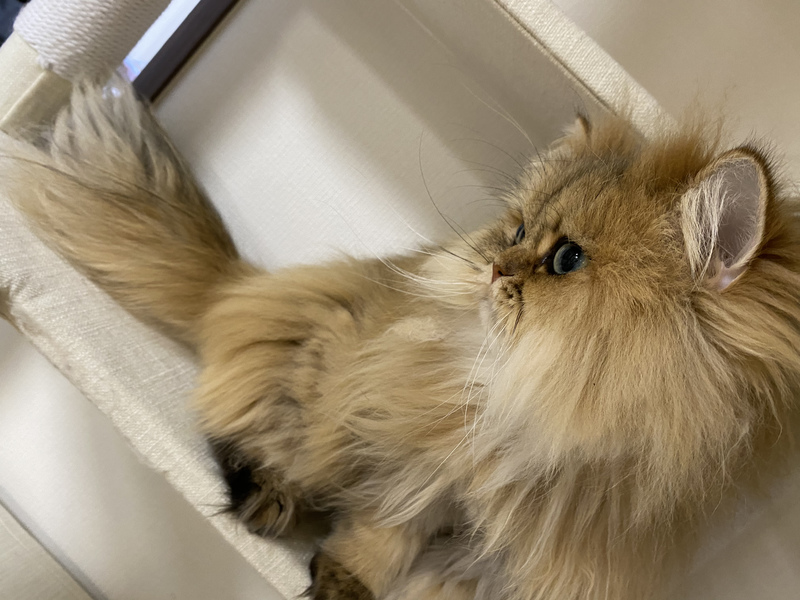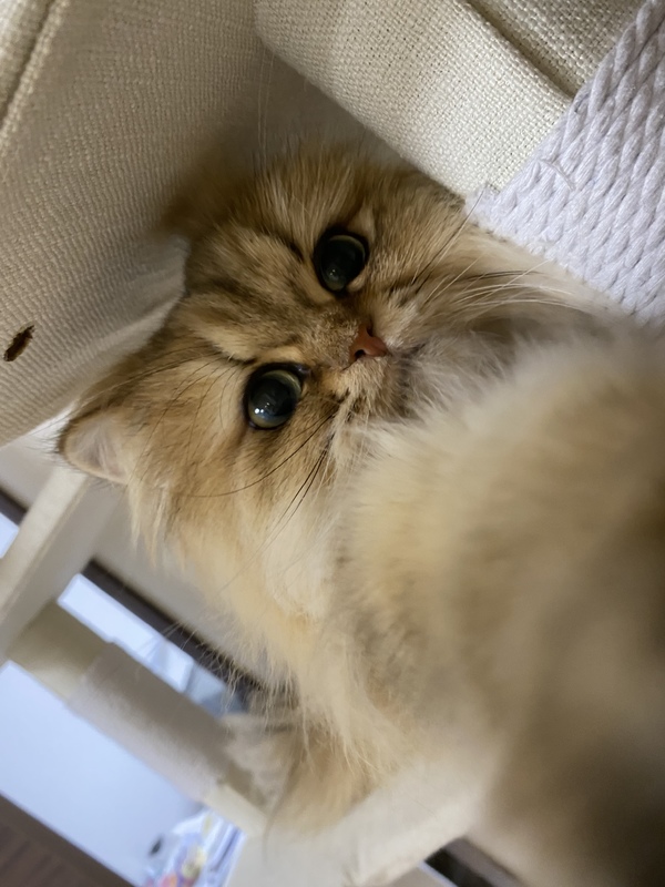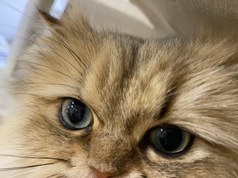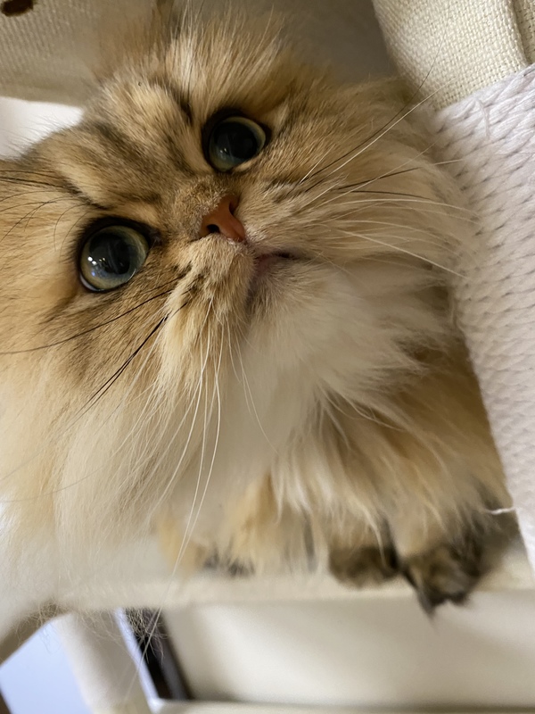 | 特徴(性格など) | チンチラゴールデンのグリーンアイの女の子です 人間が好きで、添い寝したがります あまり臆病ではなく、我が家に引き取った際も人や場所にはスムーズに馴染みました 他の猫が嫌いなので、狭い場所での多頭飼いには向かないと思います チンチラなので長毛ですが、前の家庭で小さい頃からのブラッシング慣らしをしていなかったようで、チュールなどで釣りながらのブラッシングが必要かと思います 上から入るタイプの猫トイレは入りたがりません |