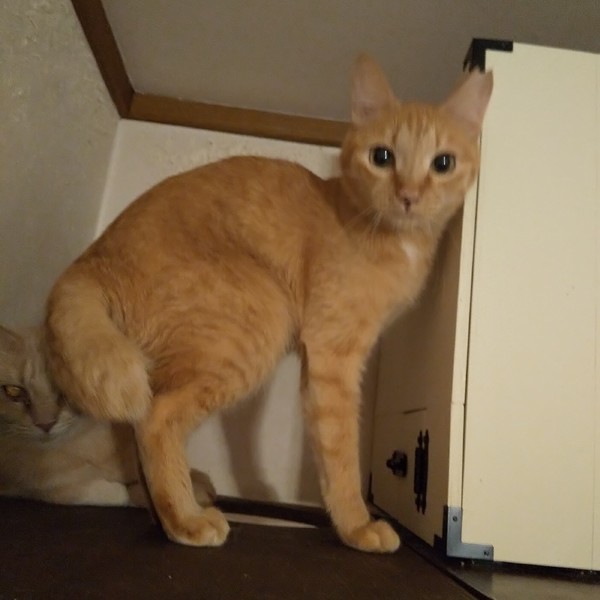| 特徴(性格など) | 仮名:きみ 毛色:珍しいメスの茶トラ(今回の多頭崩壊宅には何匹かいますが) 瞳の色:明るい茶 尻尾:中ぐらいの長さのカギ尻尾 性格・特徴:子猫のように小さくて華奢な子です。 顔立ちもまん丸でとてもキュート。 ドラえもんの鈴の位置にワンポイントで白い毛があり、お鼻と唇に茶色の点々があります。 まだ緊張していますが、なでても逃げることはないので、馴れればスリゴロちゃんになってくれると思います。 これまで劣悪な環境で辛い思いをしてきた分、愛情たっぷりに育ててくれる方を希望します。 猫同士で団子になるのが大好きなので、先住猫のいるお宅か、仲のいい子とペアでお迎えください。 システムトイレのしつけ済み。 左耳に桜カットあり。 |