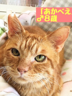 | 里親募集する理由 | 高架下で仔猫の時から飼い主さんと暮らしていましたが、あかべぇの状態が思わしくなかったため保護されました。 活動内容や保護猫の情報など、ブログをご参照下さい。 『またたび家の日常』 http://ameblo.jp/nyancoouchisagashi22/ |