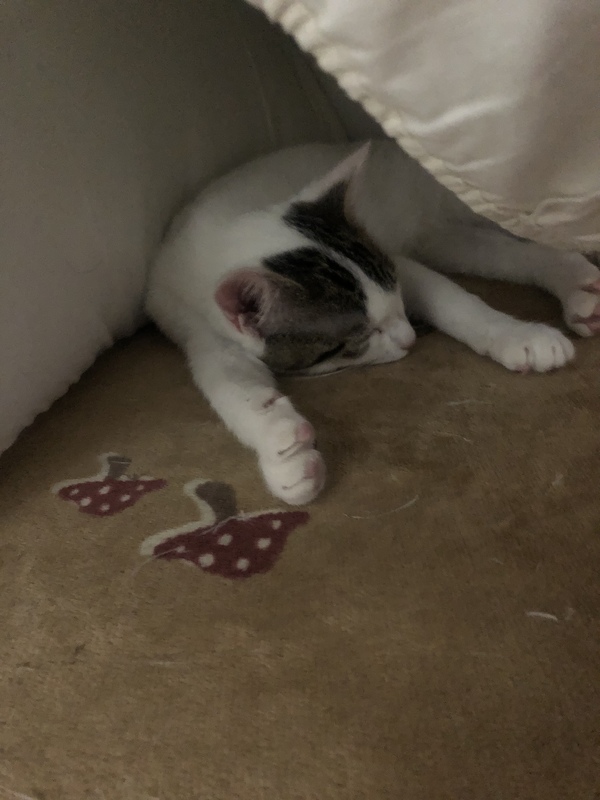 | 特徴(性格など) | 推定、2020年9月20日くらいの産まれです。 離乳して1ヶ月間くらいは外で野良猫の母親と他のきょうだいと暮らしていました。 食欲旺盛で元気に遊びます。 保護してしばらくは酷い下痢が続いていましたが、現在は治りました。 警戒心が強く、臆病な性格ですが、一緒に保護しているきょうだい猫にリードされて少しずつ慣れています。 コクシジウム駆除、回虫駆除、ノミダニ駆除済み。 怖がりで臆病なので、人と仲良くなるには時間が必要です。 現在は撫でるとゴロゴロ言ってくれます。 とても整ったお顔のイケニャン君です。 |